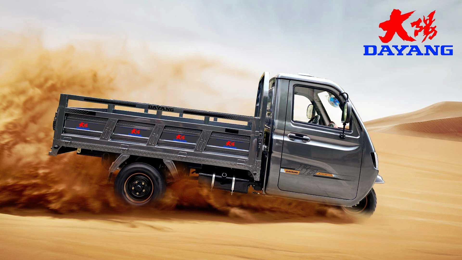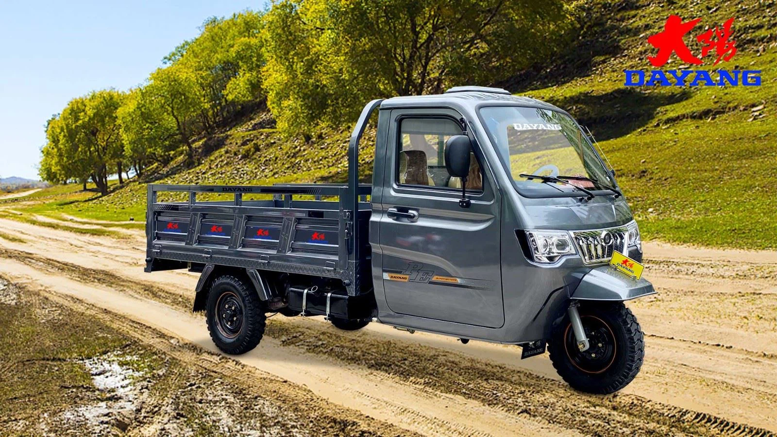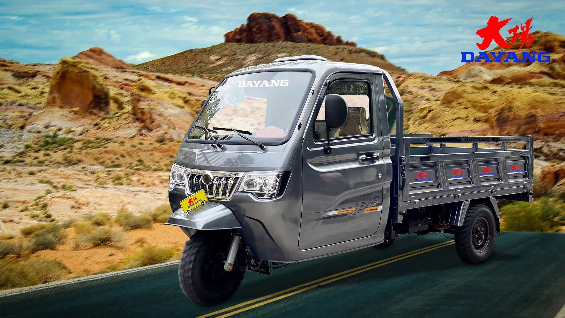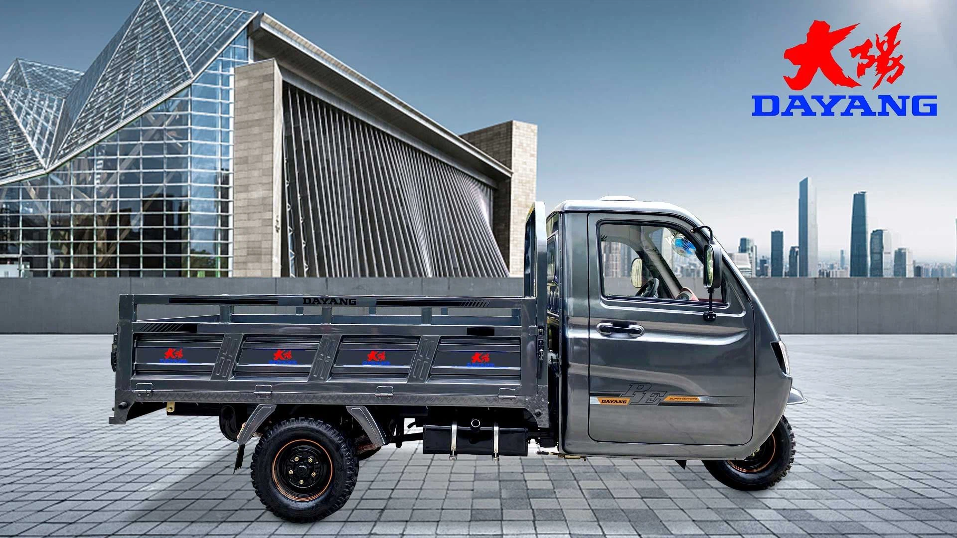 3 wheel Cargo tricycles Delivery van for heaving loading under rough roads. Three same wheels with new style fuel tank and F. shock absorber